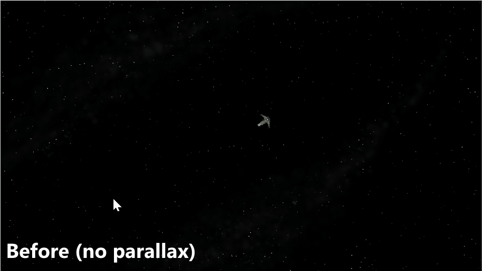 The parallax background consists of two layers: dust particles in the background (slow, 0.25x–1x speed) and clouds in the foreground (fast, 1.25x speed).